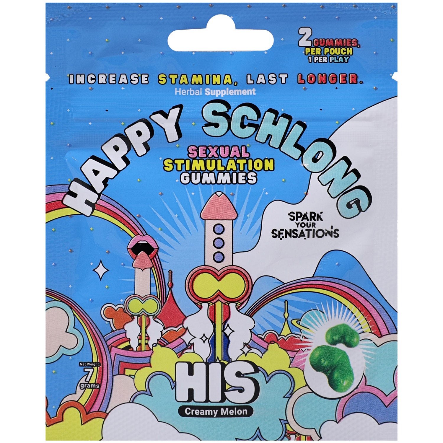 Happy Schlong (His) - Sexual Stimulation Gummies - 12 Pk/2 Pcs Per Pouch - Display